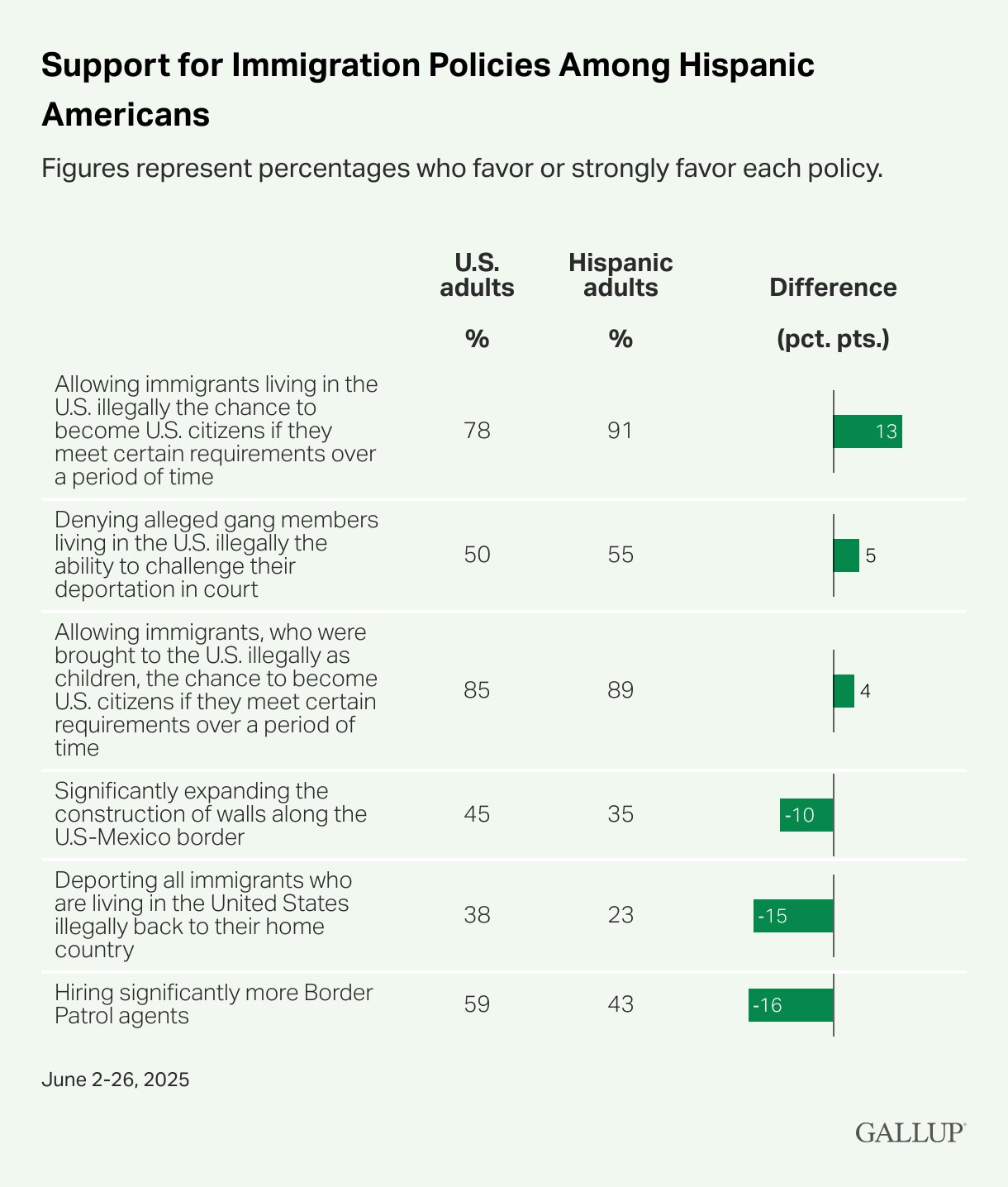 Am 11. Juli 2025 veröffentlichte Gallup eine Umfrage, die zwischen dem 2. und 26. Juni 2025 durchgeführt wurde. Befragt wurden 1.402 erwachsene Amerikaner. Dazu kam eine weitere Stichprobe unter schwarzen und hispanischen US-Bürgern, die in ihrer Gewichtung der nationalen Demografie entsprach.